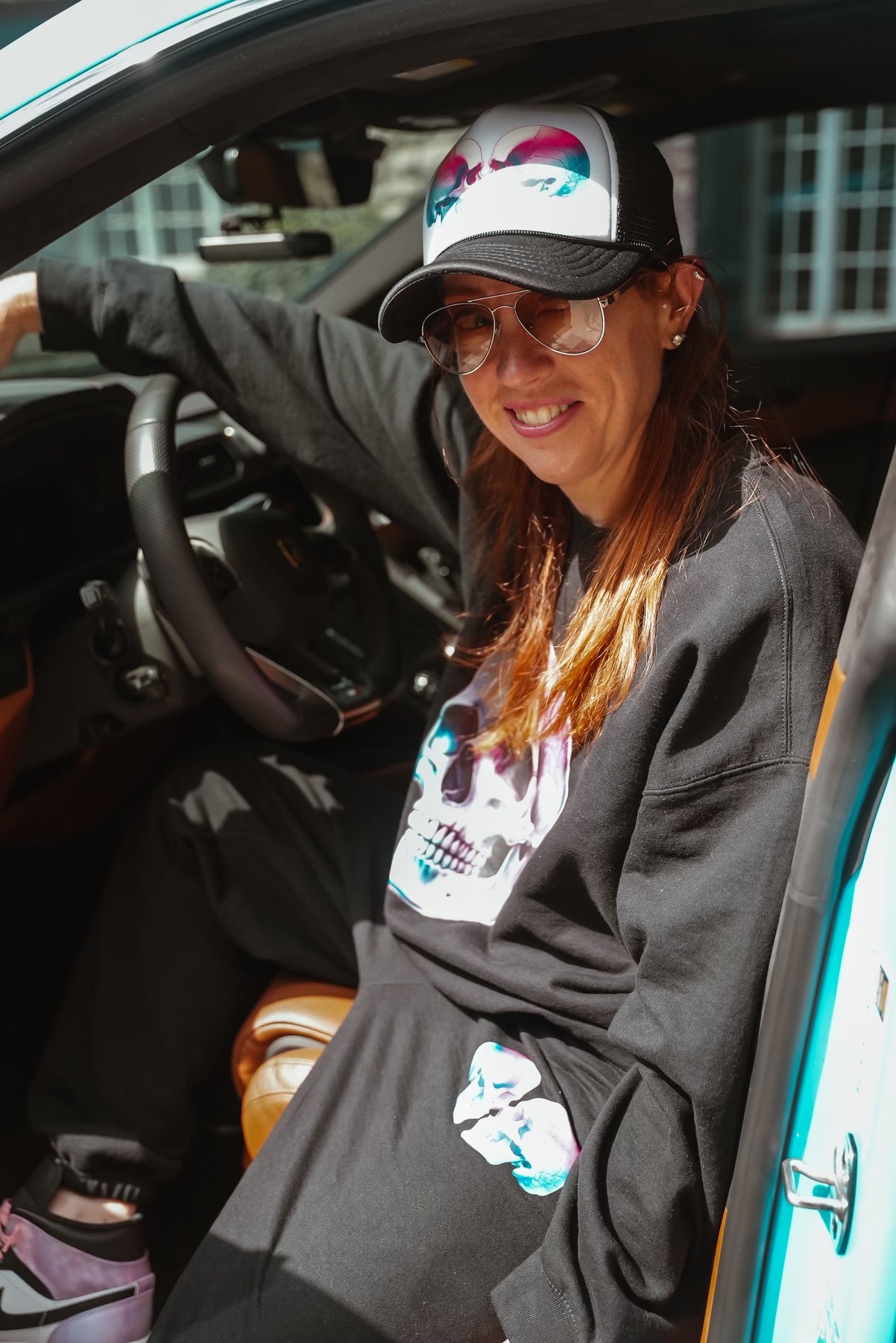 Cranial Love Trucker Hat | Black Ball Cap with Skull Design