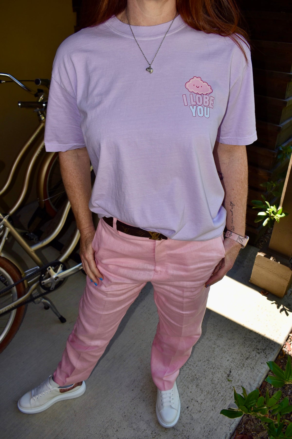 - "I Lobe You" pun with cute cartoon brain on upper left chest