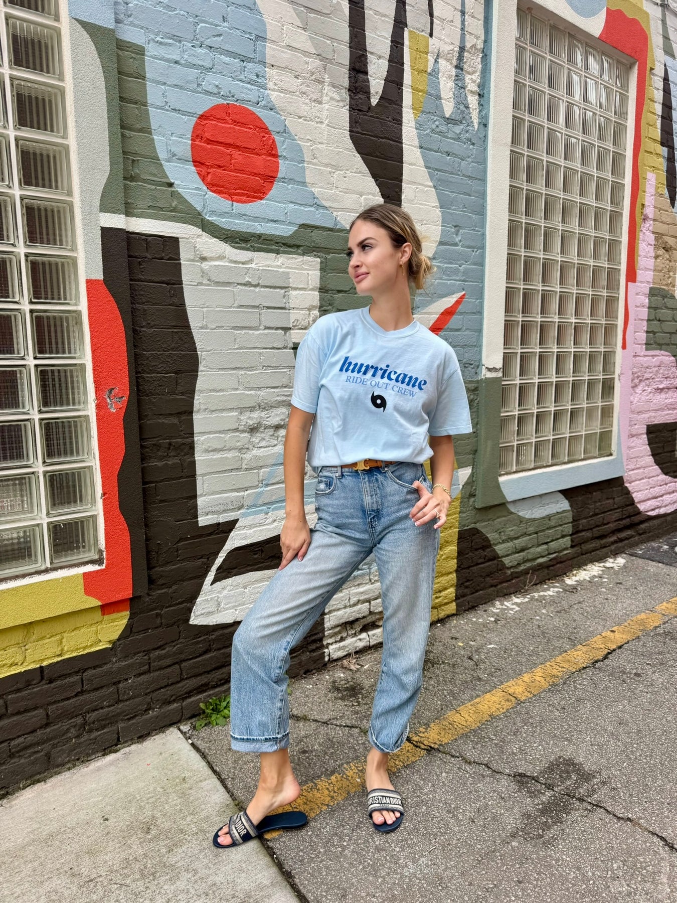 - Front Design: Classic hurricane symbol with "Hurricane Ride Out Crew" catchphrase