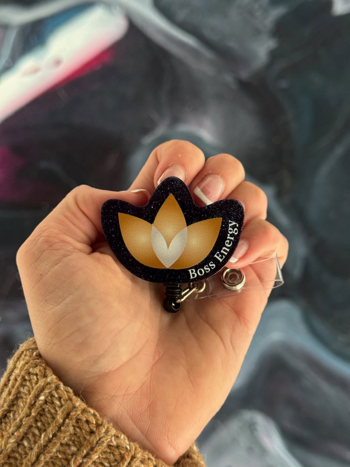 Bring your Boss Energy wherever you go. This badge reel from the Ladyspinedoc x Confidence Doc Collab is an iconic reminder of self-love, growth, and transformation. Featuring The Confidence Doc’s signature lotus logo with “Boss Energy” on a sparkly background, this reel keeps your credentials close while making a statement about who you are.