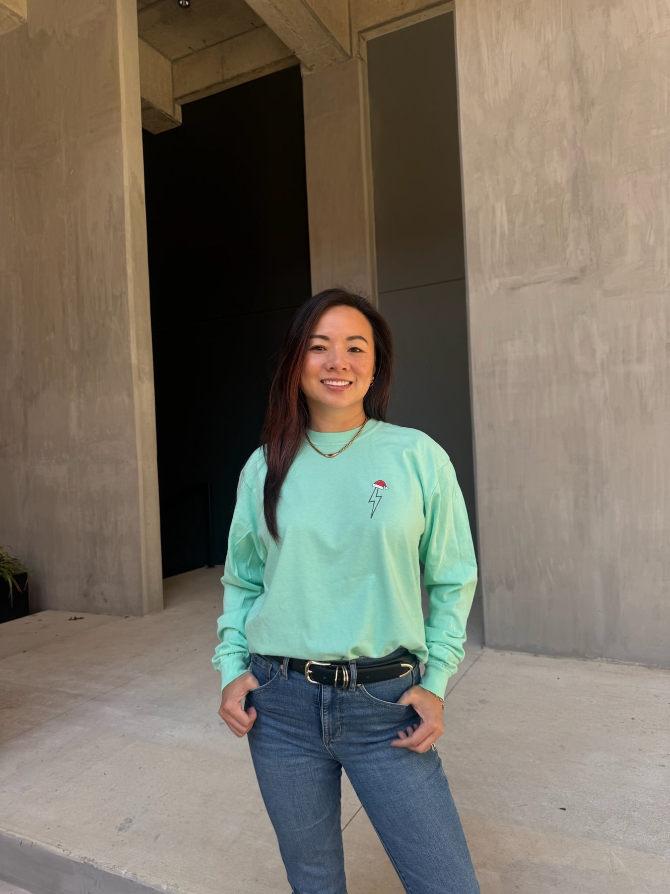 Get festive with the Merry and Aligned Tee, the perfect holiday shirt for spine surgeons, neurologists, chiropractors, and anyone who loves to celebrate spines during Christmastime. This light green, unisex, long sleeve tee features a detailed anatomical spine wrapped in colorful Christmas lights on the back and a lightning bolt with a Santa hat on the front. Made from a soft, durable, ring-spun cotton, it’s perfect for clinic days, holiday parties, or cozy weekends.